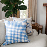 Block Print Gingham Pillow in Blue