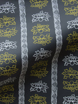 Floral Stripe Wallpaper in Night Lemon