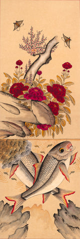 Koi Fish in Floral Pond Art Print