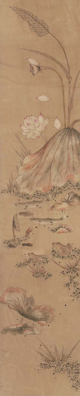 Korean Lotus Pond Scene in Sepia Art Print
