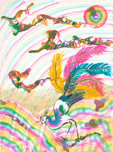 Mythical Bird in Flight Over Prismatic Landscape B Art Print