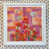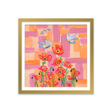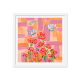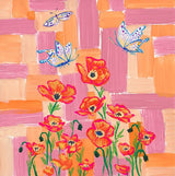 Poppies and Butterflies Color Study in Pink and Orange Art Print