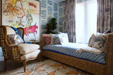 Our screen printed wallpaper is non-pasted and should be installed using a traditional hanging method. Paste the back of the wallpaper using a roller brush. Fold the pasted side together (aka 'book') and let stand for 5-7 minutes. This will keep the seams from opening up and drying out while the paper is setting.
