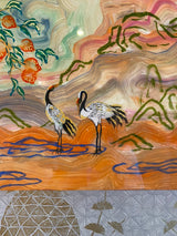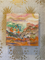 - Gouache, tempera, block printing ink, 24k gold leaf, 24k white gold leaf, lacquer on clay coated wood panel