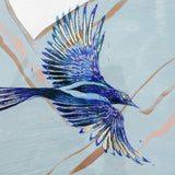 - Gouache, tempera, block printing ink, acrylic, 24k gold leaf, 12k white gold leaf and lacquer on clay-coated panel